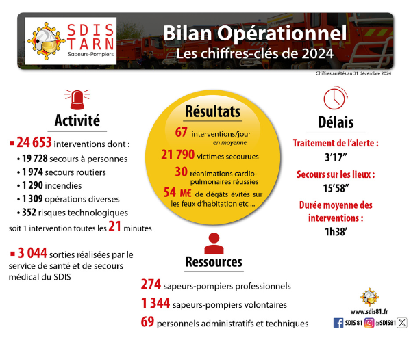a réalisé 24 653 interventions en 2024 (soit plus de 67 interventions par jour en moyenne).